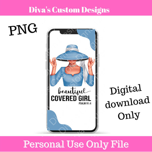 Covered Girl (Light Blue & White) IOS Wallpaper