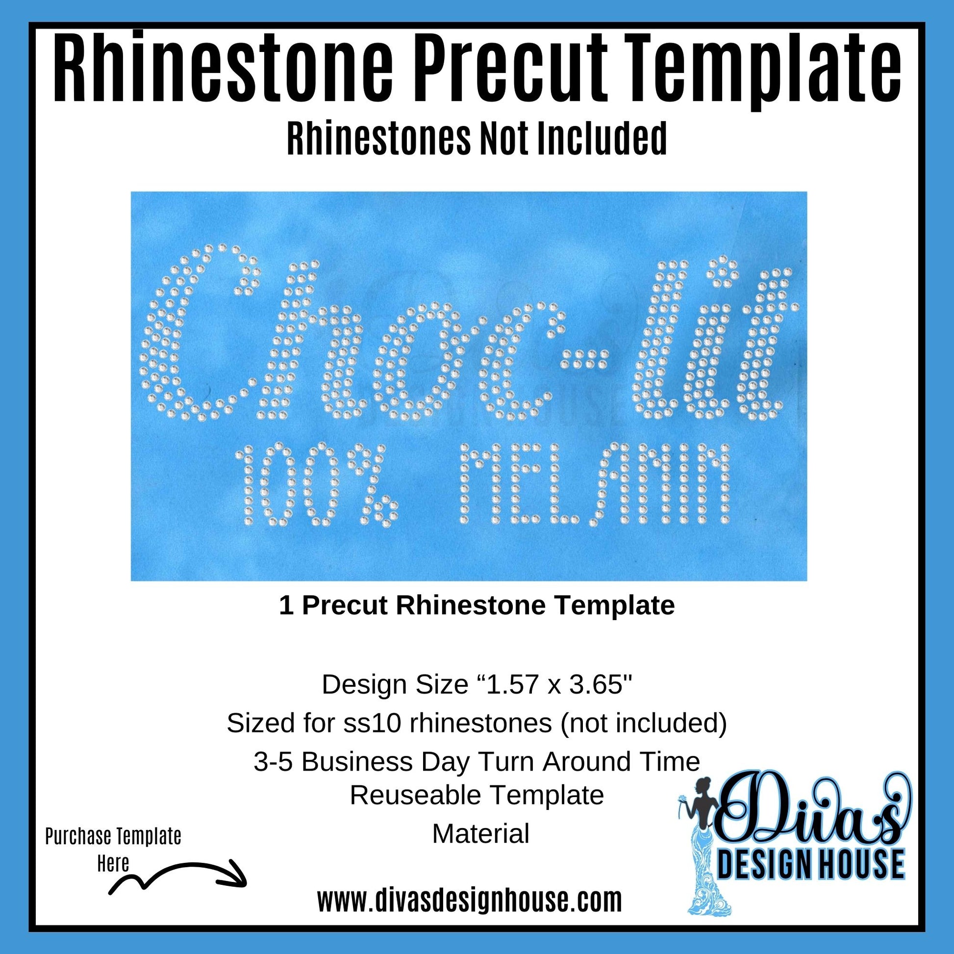 Please note that this product has a processing period of 5-7 business days, with shipping time additional. Each pre-cut rhinestone template is designed for use with SS10 rhinestones, which are not included with the purchase.