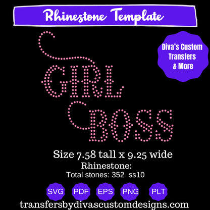 Girl Boss Rhinestones, Digital Rhinestone SVG, silhouette bling cricut, sparkle DIY iron on transfer